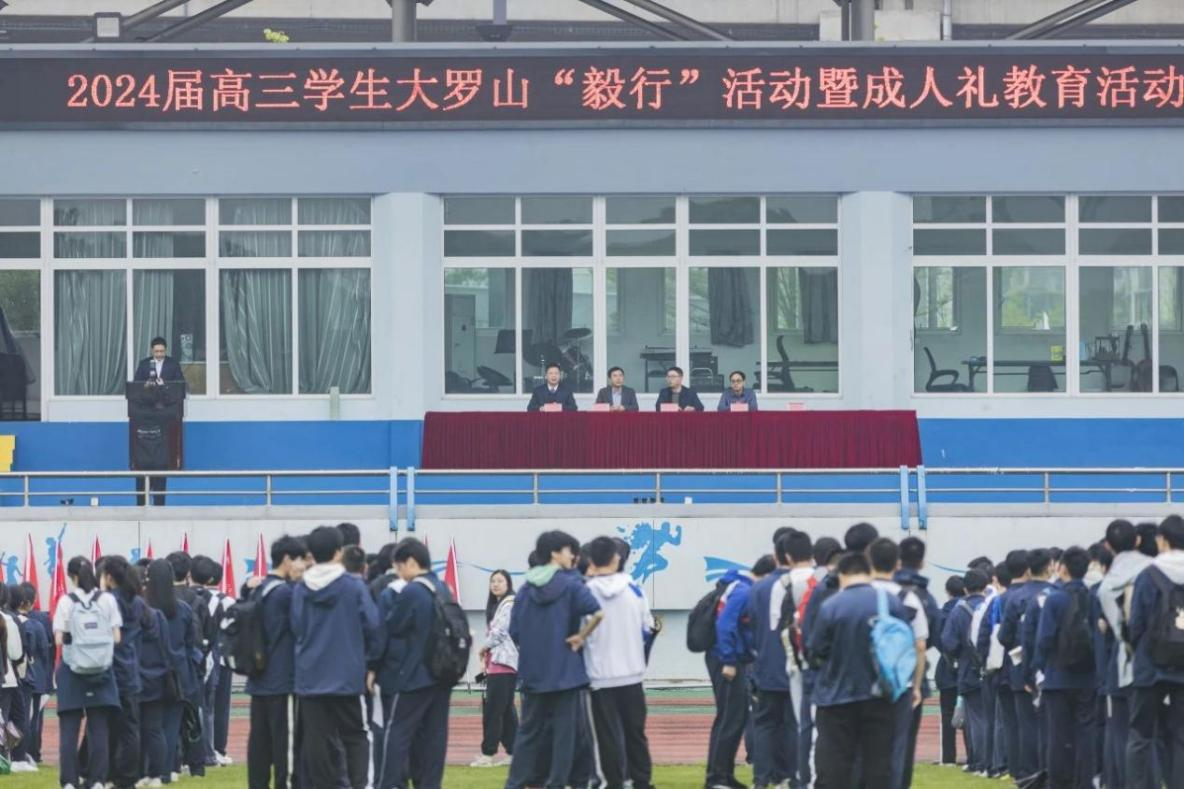 4月2日上午,温州中学高三段举行大罗山毅行。奏响国歌与校歌,揭开启程的序幕。