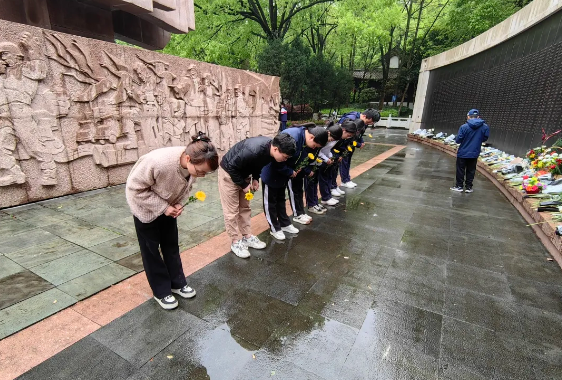 年年祭扫先人墓,处处有犹长春风。在寄托哀思之时,我们也要学习先烈革命精神,为振兴中华建功立业,不忘烈士抛忠骨、民族复兴中国梦。传承红色基因,弘扬革命精神。2024年4月4日,温中学子徒步来到翠微山革命烈士陵园祭奠先祖。下午两点,清明小雨,温州中学团委学联的部分代表及团委老师,徒步前往翠微山烈士墓园,祭奠英烈。丰碑书写着烈士的英魂,庄严肃穆中,同学们为他们献上携着崇高敬意的黄色花束最后深深鞠下躬,向革命英烈致敬。