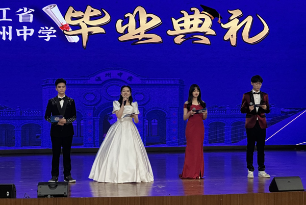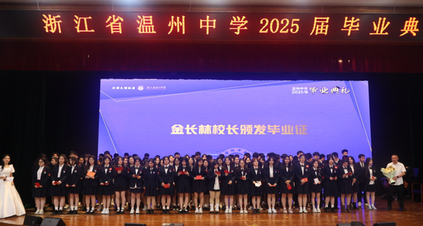 五月的蝉鸣尚未喧响,阳光已为青春披上鎏金。5月25日下午,温州中学新疆部2025届学生毕业典礼在科技楼800人报告厅隆重举行。随着四名高三主持人身着笔挺礼服款款登场,台下爆发出阵阵欢呼。他们微笑着,眼中有星光,用话筒传递着对人生盛夏的期待。